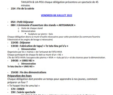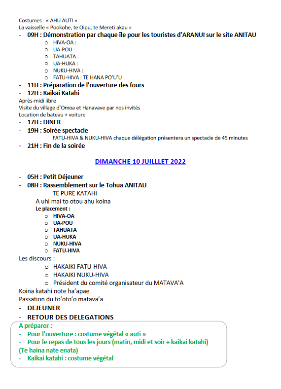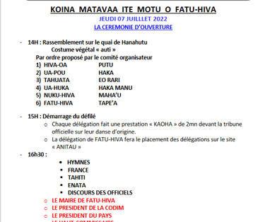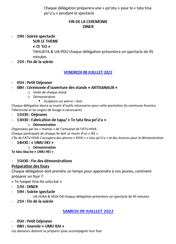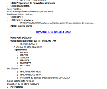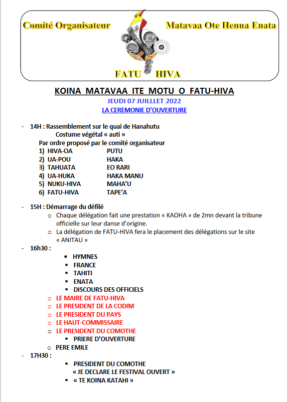 Il est organisé par le COMOTHE, Comité Organisateur du Matavaa o te Henua Enana.